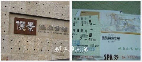 儷景溫泉會館裡面有四池,分別是最大的SPA游泳池(冷水)、藥草池、泥漿池(旁邊有一盆泥漿可以拿來塗抹全身)和露天的冷水池,還有蒸汽室和烤箱,每一池都玩玩都泡一下,休息一下喝個水,就這樣玩了一個小時,我已經泡到滿臉通紅,我們就決定出去了。假日人還不少,不少都是全家人一起來的,SPA游泳池裡到處都是小孩,出去外面坐在外頭的涼亭吹風、喝著運動飲料吃著零食真的很舒服。我們出來後在外頭坐著一會,發現3點過後泡湯的人更多了,不過人太多可能就不好玩了。泡完湯後我們慢慢逛著街上的特產店買了蓮子米香(關子嶺還是屬於白河鎮的一部分,所以這裡也買得到白河的特產)、新鮮的香菇和溫泉粉,最後在嶺頂公園旁坐上了回程的新營客運,結束了這天的泡湯行。